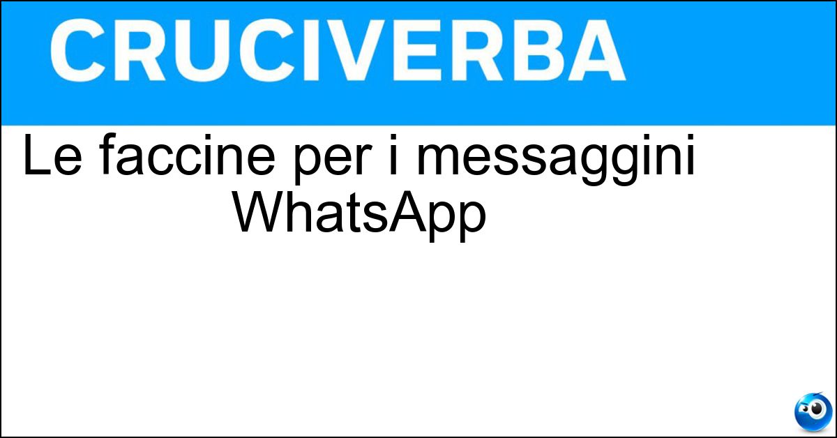 Adesso divertiti e prova a risolvere anche queste definizioni correlate: Le faccine dei messagginiFaccine da WhatsAppIl gruppo con WhatsApp e InstagramLa si può effettuare anche su WhatsAppCosì sono le più comuni faccine in chat