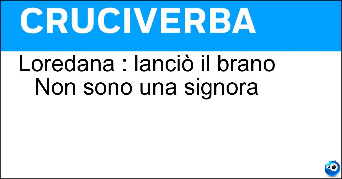 La soluzione di 5 lettere per la definizione 'Loredana : lanciò il brano Non sono una signora' è 'Bertè'. Scopri altri termini utili per La Settimana Enigmistica, CodyCross e giochi di parole crociate.