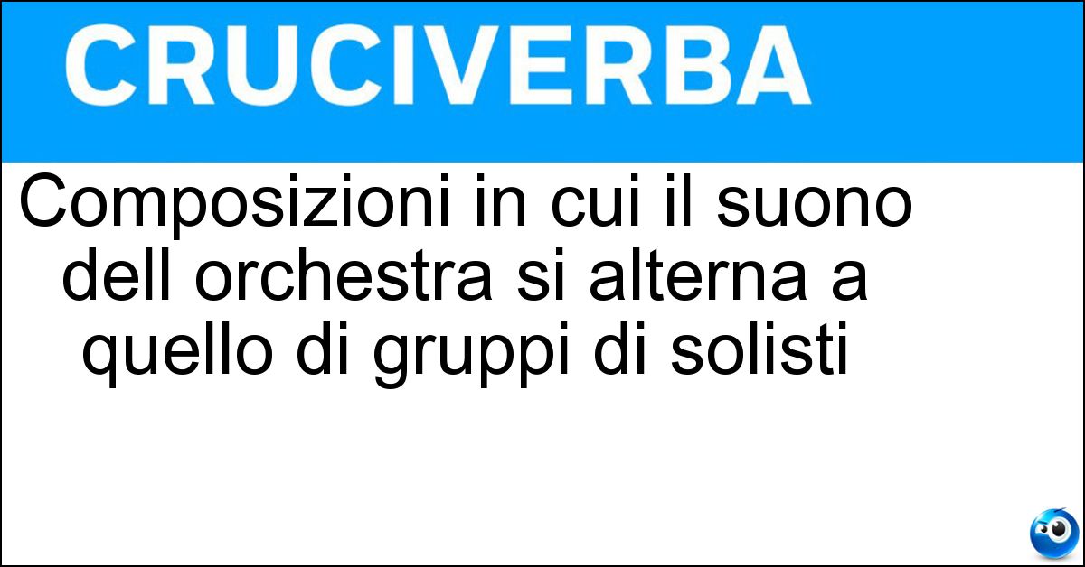 Composizioni in cui il suono dell orchestra si alterna a quello di gruppi di solisti nei cruciverba: la soluzione di 14 lettere è Concerti Grossi