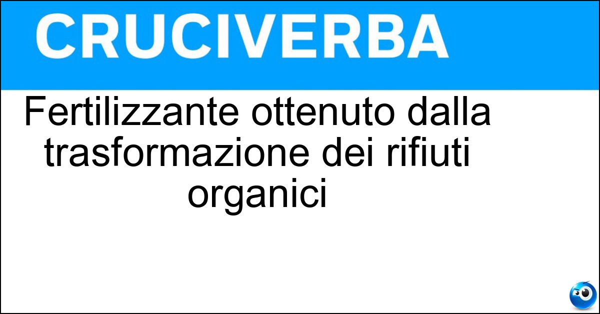La soluzione di 7 lettere per la definizione 'Fertilizzante ottenuto dalla trasformazione dei rifiuti organici' è 'Compost'. Scopri altri termini utili per La Settimana Enigmistica, CodyCross e giochi di parole crociate.