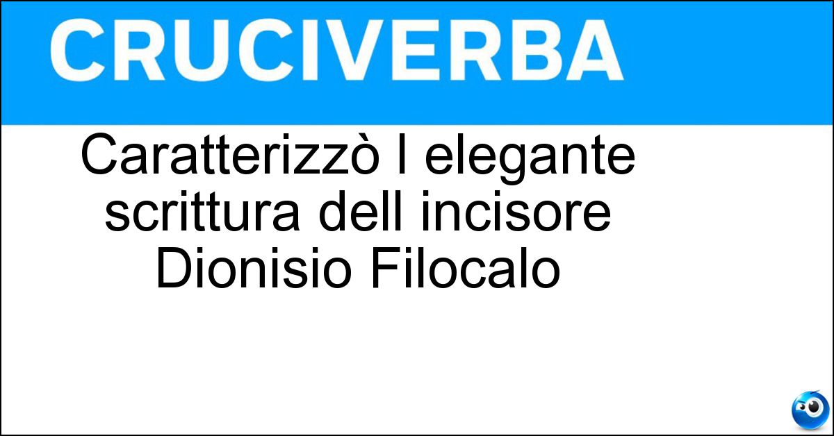 Testate storiche come La Settimana Enigmistica, Enigmistica Più e altre riviste specializzate hanno incluso più volte nei loro schemi la definizione "Caratterizzò l elegante scrittura dell incisore Dionisio Filocalo". La risposta di 16 lettere è stata controllata con attenzione dall’enigmista Anna Spiotta, per garantirne correttezza e affidabilità nell’uso pratico. L’attenzione dedicata alla verifica rende la risposta utilizzabile senza dubbi nella maggior parte dei contesti enigmistici.