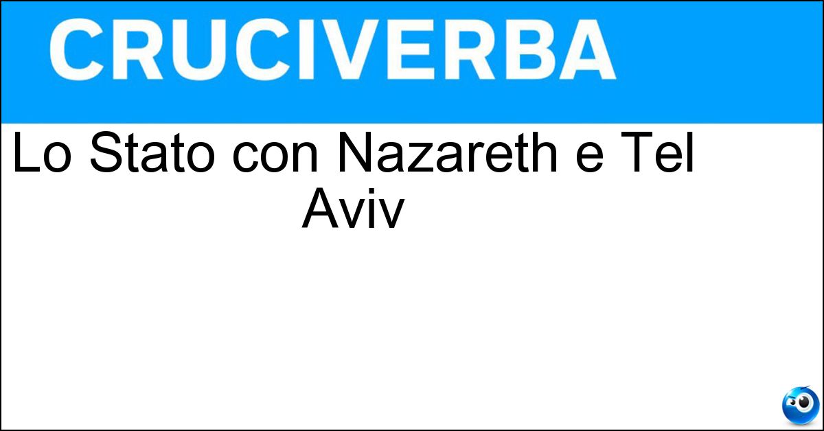 La soluzione di 7 lettere per la definizione 'Lo Stato con Nazareth e Tel Aviv' è 'Israele'. Scopri altri termini utili per La Settimana Enigmistica, CodyCross e giochi di parole crociate.