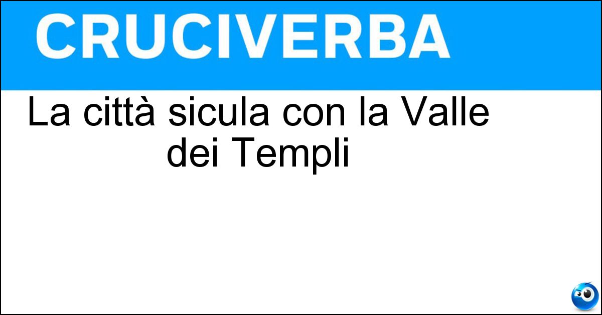 Adesso divertiti e prova a risolvere anche queste definizioni correlate: Vi nacque PirandelloDomina la Valle dei TempliCittà siciliana della Valle dei templiCittà siculaLa città sicula con la zona di lblaL antica città siciliana con i templi sul mareAbitano la città nella valle autonoma