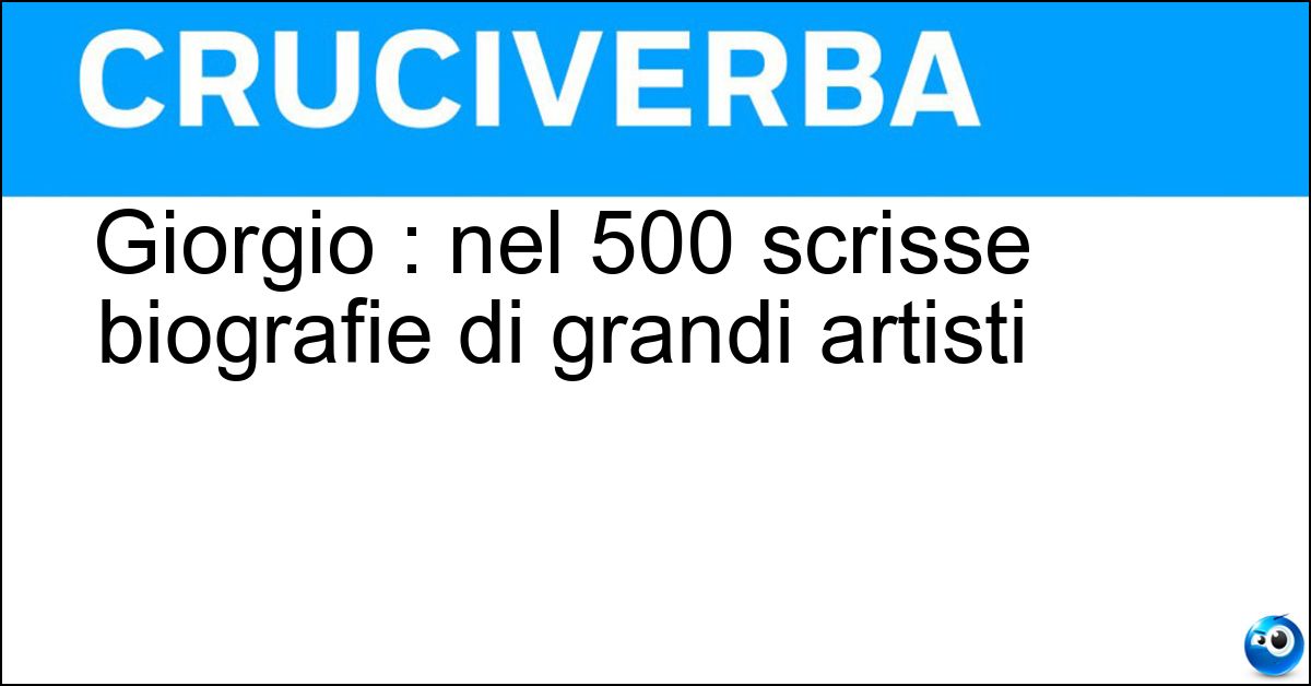 Testate storiche come La Settimana Enigmistica, Enigmistica Più e altre riviste specializzate hanno incluso più volte nei loro schemi la definizione "Giorgio : nel 500 scrisse biografie di grandi artisti". La risposta di 6 lettere è stata controllata con attenzione dall’enigmista Luca Bianchi, per garantirne correttezza e affidabilità nell’uso pratico. Il controllo effettuato assicura una corrispondenza precisa con le griglie più diffuse nell’enigmistica italiana.