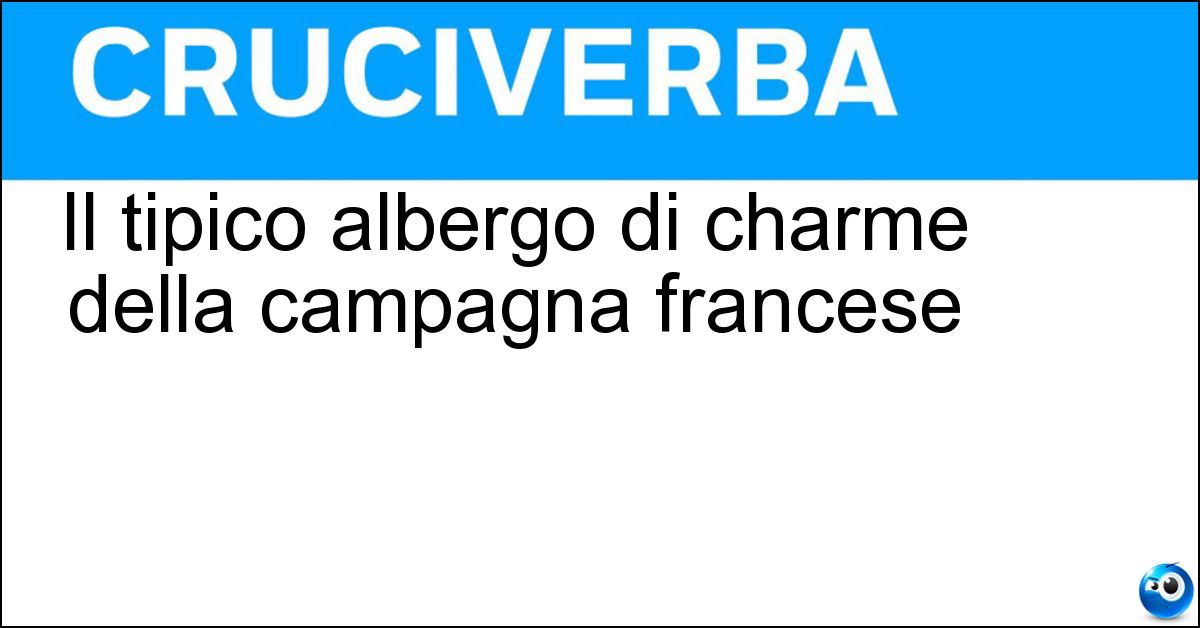 Questa pagina è dedicata alla definizione "Il tipico albergo di charme della campagna francese" e alla relativa soluzione utilizzata nei cruciverba italiani. In alcuni casi, il significato della definizione può variare leggermente in base al cruciverba e alle lettere fornite dagli incroci. Nonostante queste possibili differenze, l’analisi effettuata su "Il tipico albergo di charme della campagna francese" conferma che la soluzione 'Relais' è quella più coerente e compatibile con la maggior parte degli schemi italiani.
