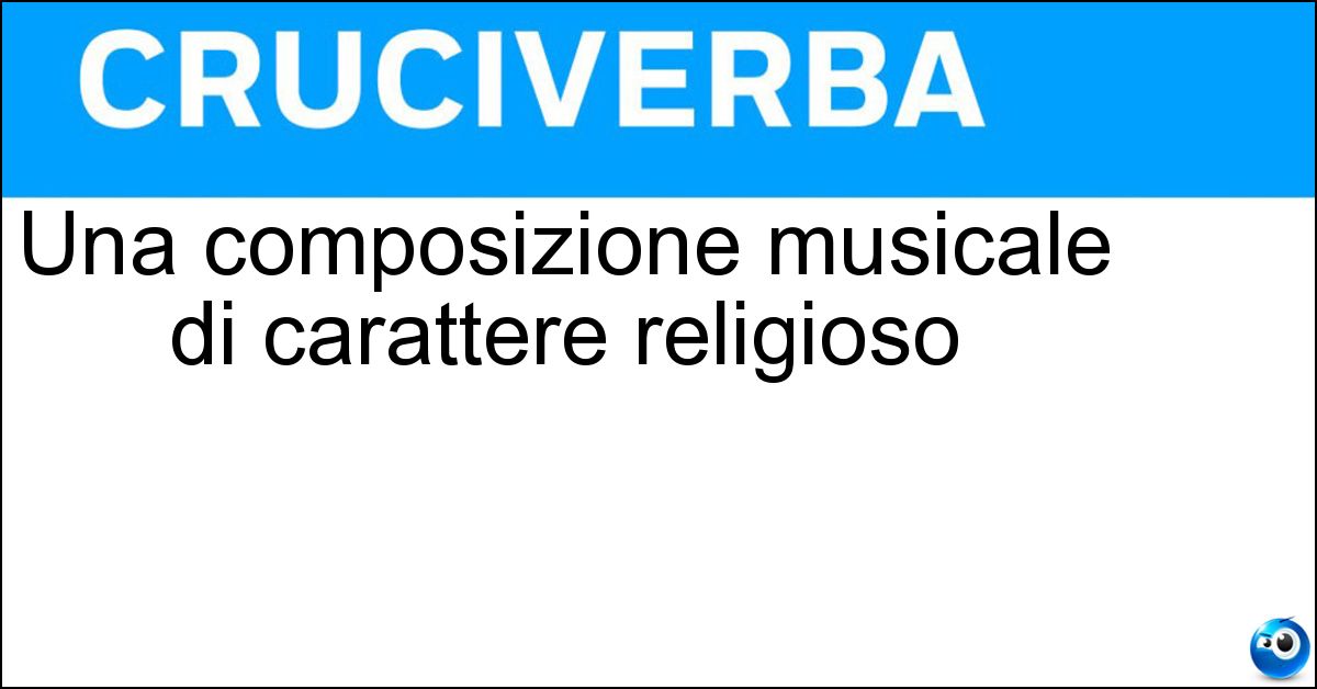 Adesso divertiti e prova a risolvere anche queste definizioni correlate: Composizione musicale di carattere religiosoComposizione musicale dei gondolieriUna composizione musicale per danzaComposizione musicaleUn discorso di carattere religioso