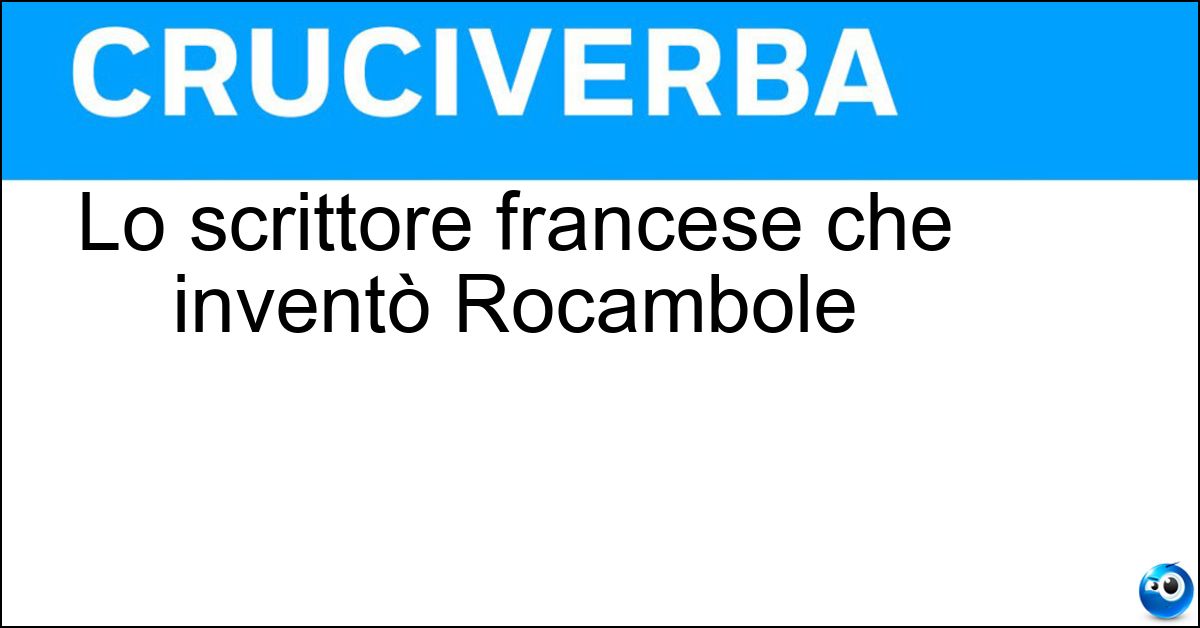 La soluzione di 15 lettere per la definizione 'Lo scrittore francese che inventò Rocambole' è 'Ponson Du Terrail'. Scopri altri termini utili per La Settimana Enigmistica, CodyCross e giochi di parole crociate.