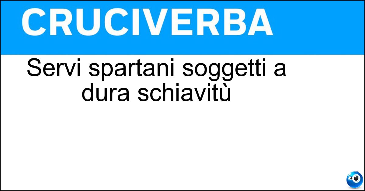 Adesso divertiti e prova a risolvere anche queste definizioni correlate: Gli schiavi di SpartaAntichi schiavi spartaniSchiavi dell antica SpartaChe dura 36 mesiIl gioco che dura pocoDura come la tibiaDura tre mesiDura lex lex lat