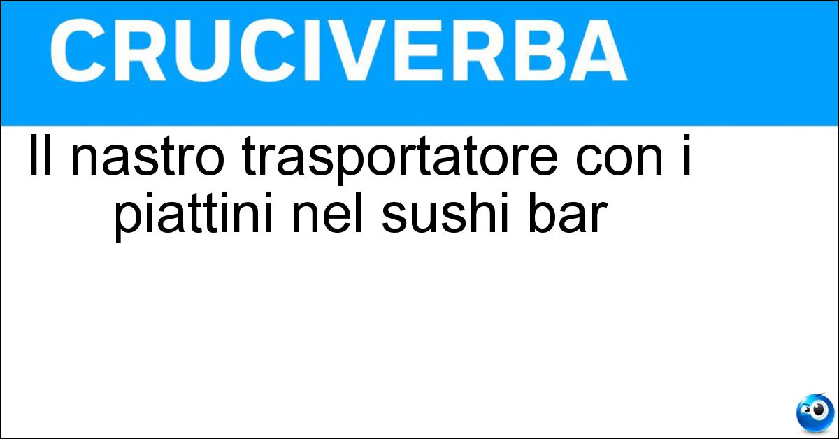 Testate storiche come La Settimana Enigmistica, Enigmistica Più e altre riviste specializzate hanno incluso più volte nei loro schemi la definizione "Il nastro trasportatore con i piattini nel sushi bar". La risposta di 6 lettere è stata controllata con attenzione dall’enigmista Paola Cammarota, per garantirne correttezza e affidabilità nell’uso pratico. Il controllo effettuato assicura una corrispondenza precisa con le griglie più diffuse nell’enigmistica italiana.