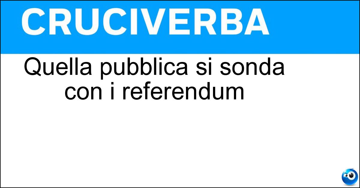 Testate storiche come La Settimana Enigmistica, Enigmistica Più e altre riviste specializzate hanno incluso più volte nei loro schemi la definizione "Quella pubblica si sonda con i referendum". La risposta di 8 lettere è stata controllata con attenzione dall’enigmista Luca Bianchi, per garantirne correttezza e affidabilità nell’uso pratico. L’attenzione dedicata alla verifica rende la risposta utilizzabile senza dubbi nella maggior parte dei contesti enigmistici.