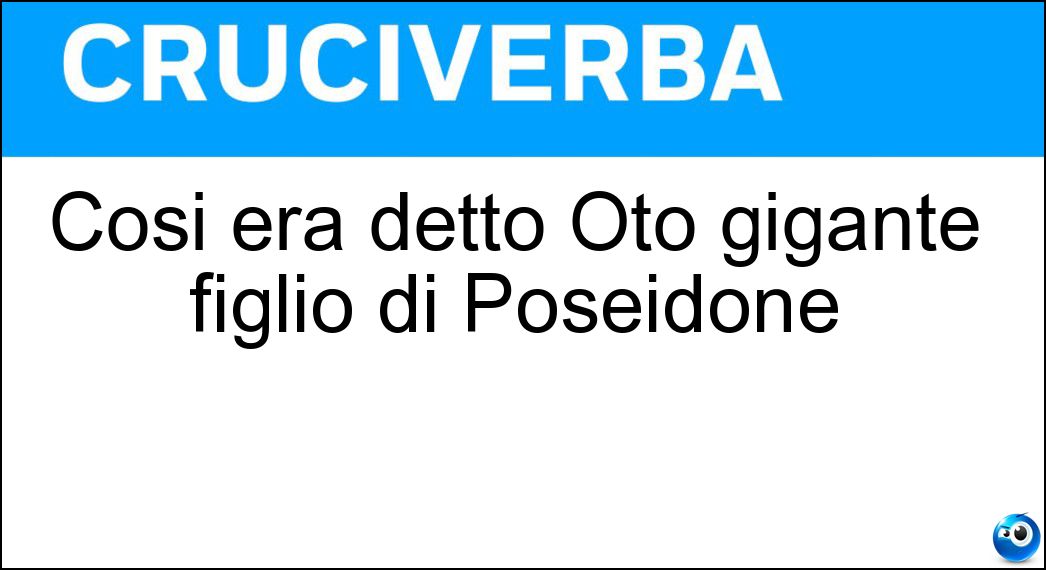 Nei cruciverba e nelle parole crociate, la definizione "Così era detto Oto gigante figlio di Poseidone" corrisponde a una soluzione formata da 6 lettere. È un quesito ricorrente nel mondo dell’enigmistica, presente con frequenza sia nelle griglie stampate sia nei giochi digitali dedicati agli appassionati.