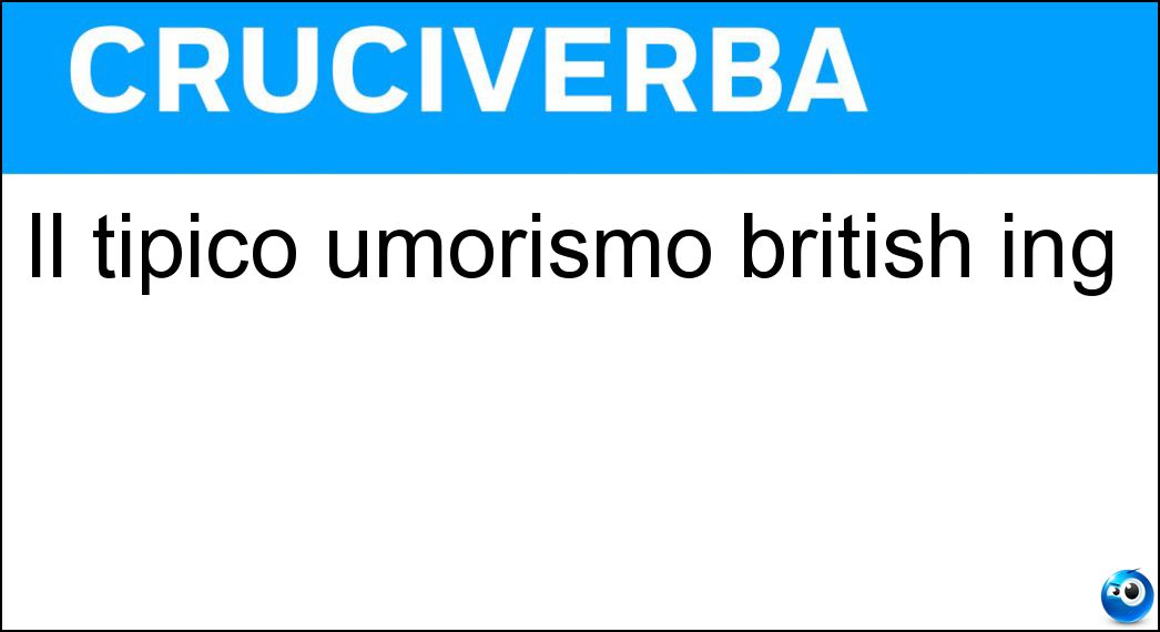 Nei cruciverba e nelle parole crociate, la definizione "Il tipico umorismo british ing" corrisponde a una soluzione formata da 6 lettere. È un quesito ricorrente nel mondo dell’enigmistica, presente con frequenza sia nelle griglie stampate sia nei giochi digitali dedicati agli appassionati.