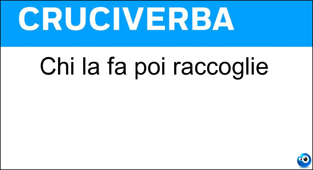 Nei cruciverba e nelle parole crociate, la definizione "Chi la fa poi raccoglie" corrisponde a una soluzione formata da 6 lettere. È un quesito ricorrente nel mondo dell’enigmistica, presente con frequenza sia nelle griglie stampate sia nei giochi digitali dedicati agli appassionati.