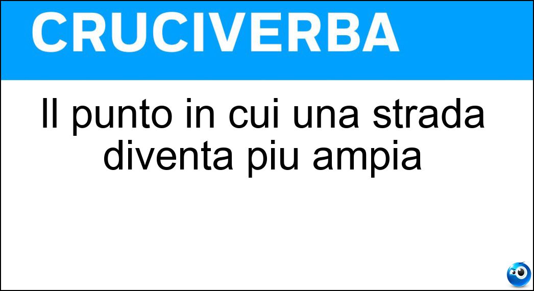 Nei cruciverba e nelle parole crociate, la definizione "Il punto in cui una strada diventa più ampia" corrisponde a una soluzione formata da 6 lettere. È un quesito ricorrente nel mondo dell’enigmistica, presente con frequenza sia nelle griglie stampate sia nei giochi digitali dedicati agli appassionati.