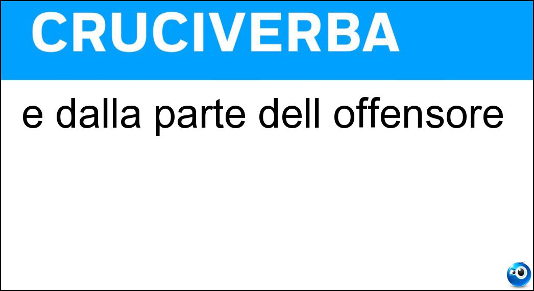 In presenza della definizione "È dalla parte dell offensore", è possibile consultare qui la risposta utile per proseguire con il cruciverba. In alcuni casi, il significato della definizione può variare leggermente in base al contesto del cruciverba e alle lettere fornite dagli incroci. Nonostante queste possibili differenze, l’analisi effettuata su "È dalla parte dell offensore" conferma che la soluzione indicata è quella più coerente e compatibile con la maggior parte degli schemi italiani.