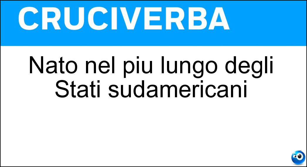 Nei cruciverba e nelle parole crociate, la definizione "Nato nel più lungo degli Stati sudamericani" corrisponde a una soluzione formata da 6 lettere. È un quesito ricorrente nel mondo dell’enigmistica, presente con frequenza sia nelle griglie stampate sia nei giochi digitali dedicati agli appassionati.