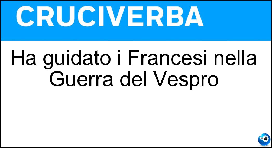 Nei cruciverba e nelle parole crociate, la definizione "Ha guidato i Francesi nella Guerra del Vespro" corrisponde a una soluzione formata da 13 lettere. È un quesito ricorrente nel mondo dell’enigmistica, presente con frequenza sia nelle griglie stampate sia nei giochi digitali dedicati agli appassionati.